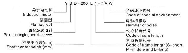 YBD系列防爆雙速/變極調(diào)速電機(jī)型號(hào)代表意義: