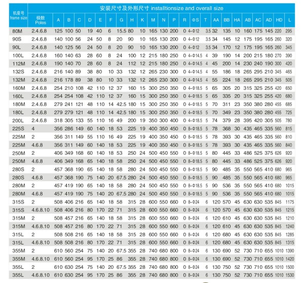 | YX3-355M-2 | 250 | 95.8 | YX3-315L2-4 | 200 | 95.4 | YX3-355L-6 | 250 | 95.0 |