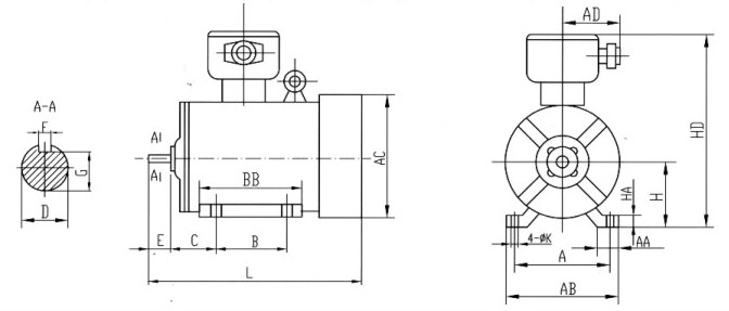 YBX3防爆電機B5安裝方式對應(yīng)圖表