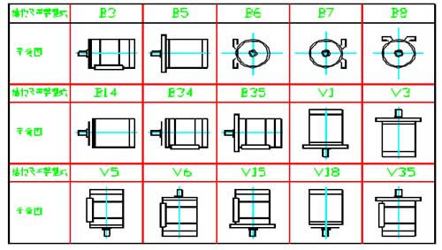 YBX4防爆電機(jī)的安裝方式符合GB997《電機(jī)結(jié)構(gòu)及安裝型式代號(hào)》及IEC34-7 的規(guī)定。本系列電動(dòng)機(jī)有以下5 種基本結(jié)構(gòu)型式:B3—機(jī)座帶底腳、端蓋無(wú)凸緣;B5—機(jī)座不帶底腳、端蓋有凸緣;B35—機(jī)座帶底腳、端蓋有凸緣;B14—機(jī)座不帶底腳、端蓋有小凸緣;B34—機(jī)座帶底腳、端蓋有小凸緣。本系列電動(dòng)機(jī)在上述5 種基本結(jié)構(gòu)上,可派生15 種常用結(jié)構(gòu)及安裝型式見(jiàn)下表: